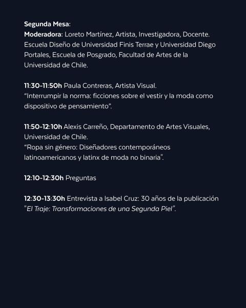 12:30-13:30h Entrevista a Isabel Cruz: 30 años de la publicación "El Traje: Transformaciones de una Segunda Piel".