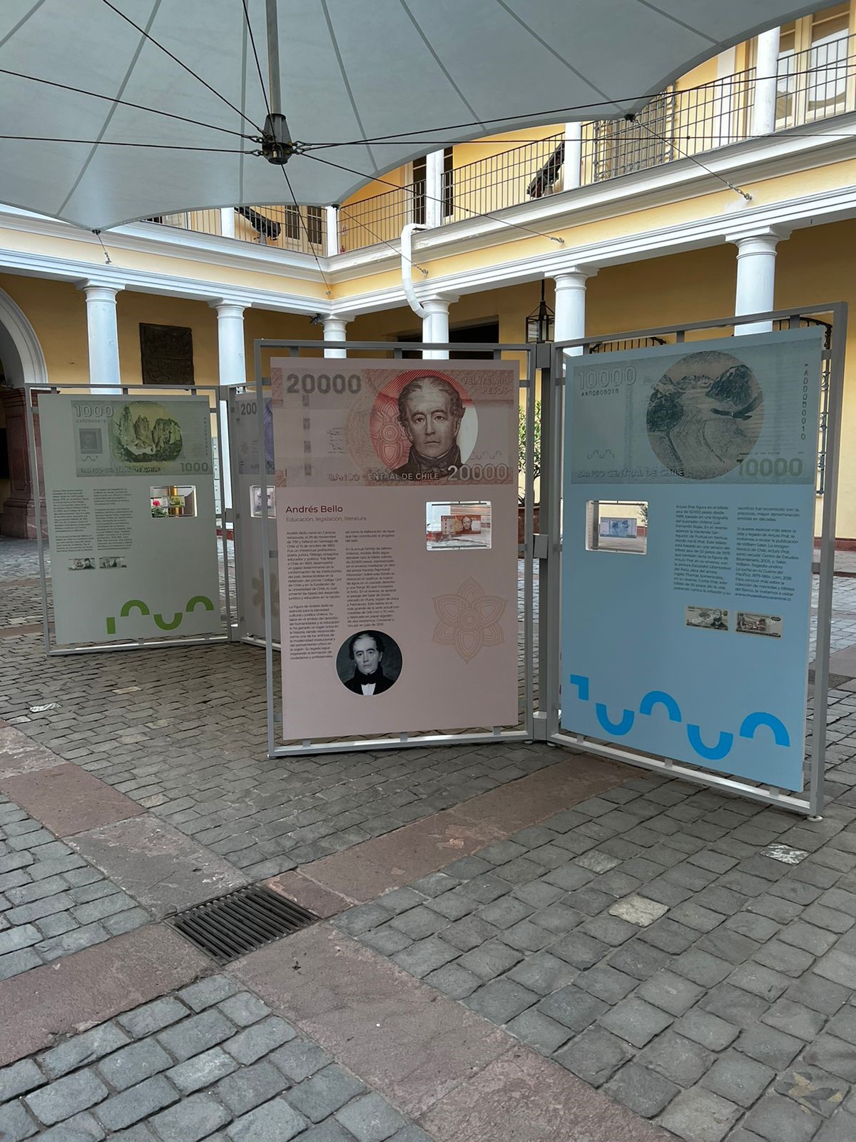 La muestra "Valores de Chile" del Banco Central en el patio de nuestro museo estará disponible hasta el domingo 3 de mayo.